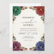 Rich, deep jewel-toned blooms form a striking border around this elegant design. The opulent floral arrangement evokes a sense of sophisticated romance, perfect for a formal affair.