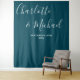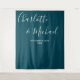 Deep Teal Script Minimalist Wedding Backdrop Tapestry