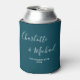 Keep your drinks cold in style with our Deep Teal Script Minimalist Wedding Can Cooler! This custom cooler can be personalized with the names of the bride and groom along with their special date. A perfect memento for guests to remember your big day.
