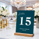 Deep Teal Script Minimalist Wedding Table Number