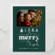 Deep Teal & Silver Retro Doodle Christmas Photo Foil Holiday Card