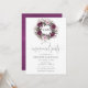 Violet and plum boho floral hand painted watercolor engagement party invitations with monogram designed to be quickly and easily customized to your event specifics.