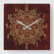 Deep Wine Red Mandala & Gold Glam Modern Chic Square Wall Clock