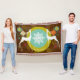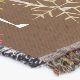 Beautiful Christmas holiday throw blanket features a background of dark brown with colourful snowflakes, a ring of solid mustard yellow, and a centre of aqua blue with tiny white polka dots and a big snowflake centre. Two white silhouette deer and pretty tree ornaments adorn this whimsical holiday throw and there's an area you can easily personalize with your family name.
