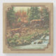 Deer and Stream Waterfall Tan Stone Coaster