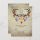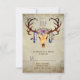 Rustic southwestern wedding response card RSVP with feather and jewel draped deer skull on a rustic vintage background. This beautiful and rustic ornate deer antler deer skull wedding RSVP response card is easily customized for your event by simply adding your details in the font style and colour and wording of your choice.