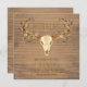 Rustic southwestern wedding invitation with feather and floral vine draped deer skull on a rustic wood background. This beautiful and rustic ornate deer antler deer skull wedding invitation is easily customized for your event by simply adding your details in the font style and colour and wording of your choice.