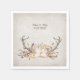 Deer antlers with autumn flower bouquet on soft brown textured background.
