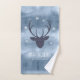 This towel set features a trendy pattern of deer head silhouettes with curving antlers, stylized arrows and tiny snowflakes on a textured-effect background in shades of blue with the opposite colours on the larger towel. Optional 'Happy Holidays' text and a template have been provided to add your name and/or other text. Search ID861 thru ID864 to see additional colour options and other products in this modern, Christmas design set.