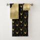 This towel set features a trendy pattern of deer head silhouettes with curving antlers, stylized arrows and tiny snowflakes on a textured-effect background in shades of gold with the opposite colours on the larger towel. Optional 'Happy Holidays' text and a template have been provided to add your name and/or other text. Search ID861 thru ID864 to see additional colour options and other products in this modern, Christmas design set.