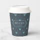 This paper cup features a trendy pattern of deer head silhouettes with curving antlers, stylized arrows and tiny snowflakes with a textured-effect in shades of watchet blue on a deep teal background. Optional 'Happy Holidays' text and a label have been provided to add your name and/or other text. Search ID861 thru ID864 to see additional color options and other products in this modern, Christmas design set.