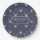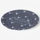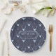This paper plate features a trendy pattern of deer head silhouettes with curving antlers, stylized arrows and tiny snowflakes in shades of sky blue and slate on a navy blue background. Optional 'Happy Holidays' text and a label have been provided to add your name and/or other text. Search ID861 thru ID864 to see additional color options and other products in this modern, Christmas design set.