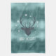 Deer Antlers Silhouette & Snowflakes Teal ID861 Kitchen Towel