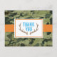 Deer Antlers Thank You Postcard. Features a camouflage background with an orange accent colour that can be change by using the "customize" feature. Coordinating items available.
