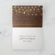 Glowing light string in deer antler floral bouquet on rustic brown wood for wedding congratulations.