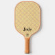 My original art is featured on this fun pickleball paddle, consisting of my original photograph of a deer face on the front of the paddle with the words "Face Shot". The image was processed with a watercolor art style for an artsy flair. The front of the paddle has a gold and tan Criss Cross retro pattern to complement the front with a Name place to add your own name. The paddle is a standard size, approved by the USA Pickleball with certification on the front.
