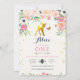 Gold foiled baby deer and butterfly surrounded by a field of floral flowers in pink and orange and gold glitter in this woodland design