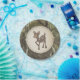 Baby shower paper plates featuring an illustration of a baby deer with a camo background.