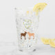 This awesome glass tumbler features a male and female deer that look like a couple in love. The male deer (buck) is dark brown and has large antlers, the female deer (doe) is paler brown with white spots. There is a heart above the deer made of white daisy flowers and yellow buttercups.