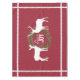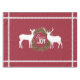 This pretty holiday tablecloth features a cranberry red background that you can change to any colour you want easily before ordering! Lovely at the table all season long, the centre has a pussy willow wreath with white text that reads Peace & Joy and a deer on each side, a buck and a doe. A white rick rack design trim surrounds the tablecloth on all four sides.