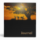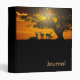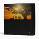 A small herd of deer settle down for the night under an enormous oak tree with a blazing sunset behind them.