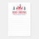 Sticky notes featuring a group of deer flanked by two green Christmas trees, and the text “Merry Christmas” below. Light grey lines for writing.