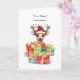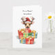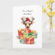 Unveil a heartwarming Christmas greeting card designed to bring joy and warmth to the precious young souls in your life. Our 'You're a special gift, cherished in every way' card showcases an endearing watercolor illustration of an adorable deer donning a Santa hat, surrounded by a delightful heap of festive gifts.
