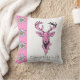 Accent your home with this stylish and elegant modern country style custom Designer Pillow featuring a pink deer head and antlers on white background and a soft pink side stripe decorated with white alpine Edelweiss flowers. Text saying "Country Life". Beautiful gift idea and home decor also for Christmas or any other occasion. Handmade in the U.S.A. !!! A beautiful gift for your friends, family All American MoJo products are produced by sustainably employed single moms in the USA and contribute to breaking the cycle of poverty for single moms and their children.