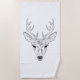 Deer Head - Simple Line Art Sketch Illustration Beach Towel