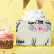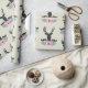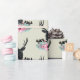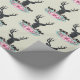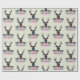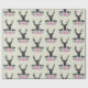 Wrapping paper with a black deer head with large antlers. Geometric lines inside the face of the deer adds a creative touch. Colourful pink flowers and mint