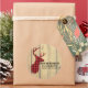 Kitchen / baking sticker with a rustic style. Designed with a deer head with antlers, made of red plaid. An image of wood planks for the background gives it an outdoorsy country feel.