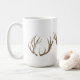 Plain white coffee mug with pictures of deer antlers. Give as a gift to a hunter or woodsman, or use in a rustic, country home. Customize size, colours and style, with travel cup options.