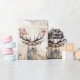 Whitetail deer with Christmas red berries in a watercolor wooded scene.