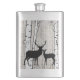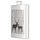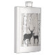 A black silhouette antlered buck and doe, birch trees, and foggy forest thicket. There's a heart carved into the largest birch tree with initials that you can customize!