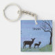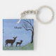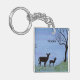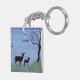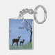 A watercolor painting of a white tail deer doe and her fawn adorns this customizable keychain!
