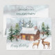 Celebrate the season with these elegant holiday party invitations.This design depicts a watercolor illustration of winter woodland scene - the fir trees, log-cabin and two deer. You can adjust text according to your requirement