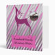 Pretty holiday binder for photos, recipes, papers, features a pretty background of diagonal stripes of lavender, pink, and chrome, silhouette deer in fuchsia, a pink banner that you can customize, jingle bells, and chrome snowflakes! We have the matching greeting cards, return address labels, postage stamps, stickers, and envelopes!