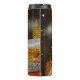 Abstract landscape design in vibrant shades of silver, gold, and red with a moonrise, stars, and a deer.