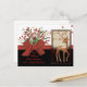 Enjoy this beautiful hand-painted holiday postcard, which you can send to your family or relatives. It features a cute deer. The bottom is black with customized text and a red bow in the middle that separates the black bottom from the white top, with beautifully crafted floral above the bow. Easily update the greeting to make it yours. Merry Christmas!