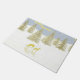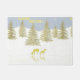 This Gold-Mosaic, graphic drawing, depicts a Doe, and her fawn, taking a drink, from a reflecting pool, surrounded by, a snowy, backdrop-of glittering, gold trees, under a shining, star.