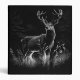 In this black and white drawing, a majestic deer with antlers is depicted standing in the middle of a peaceful and serene natural setting. The deer is drawn with intricate details and a realistic approach, capturing the essence of its wild beauty.