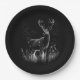 In this black and white drawing, a majestic deer with antlers is depicted standing in the middle of a peaceful and serene natural setting. The deer is drawn with intricate details and a realistic approach, capturing the essence of its wild beauty.