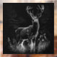 In this black and white drawing, a majestic deer with antlers is depicted standing in the middle of a peaceful and serene natural setting. The deer is drawn with intricate details and a realistic approach, capturing the essence of its wild beauty.
