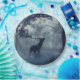 Paper plates with a photo of a regal deer with antlers standing in a shadowy forest among sunlit trees. Snow falling all around.