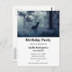 A party invitation postcard with a photo of a regal deer with antlers standing in a dark forest.