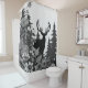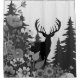 Deer emerges from pine trees and is surrounded by wildflowers in simple wildlife design.