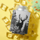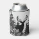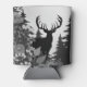 Deer emerges from pine trees and is surrounded by wildflowers in simple wildlife design.