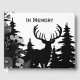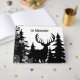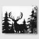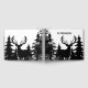 Deer emerges from pine trees and is surrounded by wildflowers in simple wildlife design.