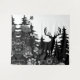 Deer emerges from pine trees and is surrounded by wildflowers in simple wildlife design.