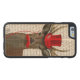 Deer with Red Top Hat and Moustache Carved Wood iPhone Case